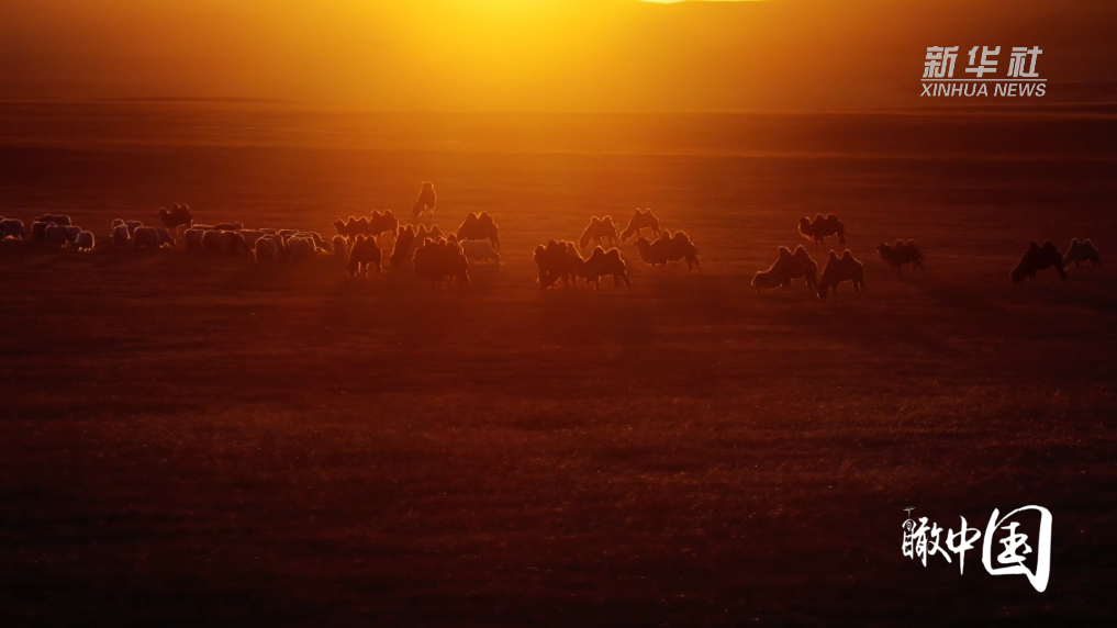 碎金般的阳光铺洒在白音锡勒牧场上,未雪的草地褪去青涩,漫成一片无际的暖黄。骆驼迈着沉稳的步子,牦牛垂着厚实的脖颈,沉浸在温柔的夕阳中,长长的剪影映在辽原之上,随光影流转轻轻晃动,连风都放慢了脚步,与生灵一同醉在这暖融融的斜阳里,静得只剩草叶摩挲的轻响。