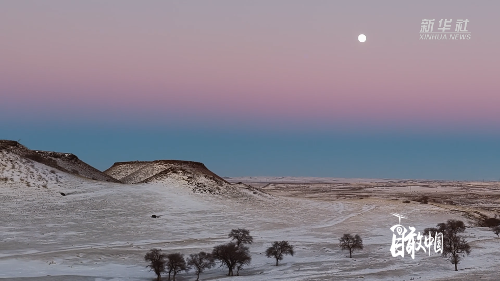 近日,内蒙古自治区锡林浩特市平顶山迎来了一场与超级月亮的浪漫邂逅。日光渐隐,超级月亮冲破冰雪勾勒的天际线缓缓攀升,最终悬于火山台地之巅。蓝粉色维纳斯带萦绕月侧,为这片亿万年火山喷发形成的多阶熔岩台地,镀上梦幻光晕。这场自然与地质的邂逅,定格下独属于锡林郭勒草原火山的冬日诗意,尽显北疆草原的生态之美与地质奇观。