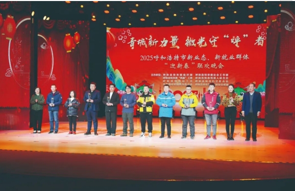 青城新力量,微光守“呼”者——在呼和浩特市新业态、新就业群体迎新春联欢晚会上为“新新之星”颁发荣誉证书。