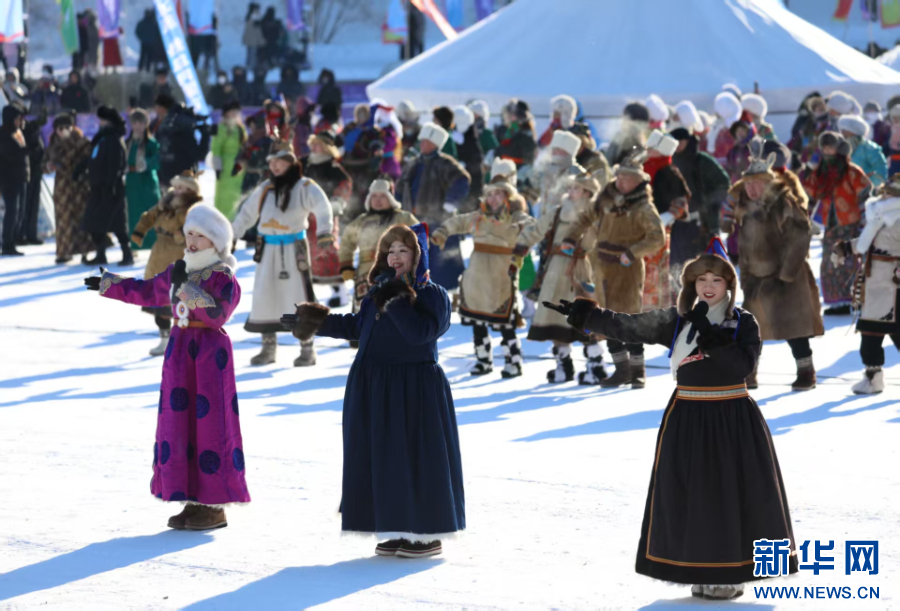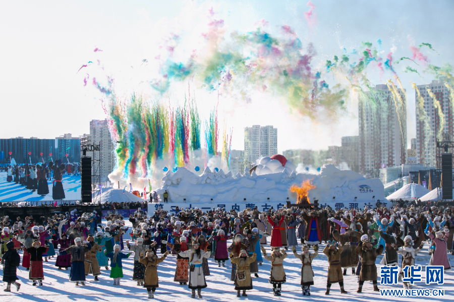 12月21日,演员在第二十一届内蒙古自治区冰雪那达慕开幕仪式上表演。新华网发(赛汉 摄)