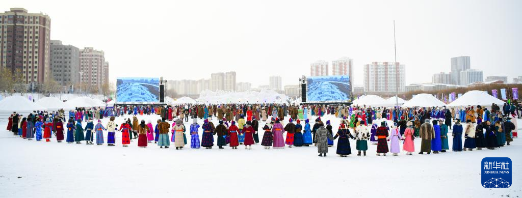 12月20日,参加开幕式彩排的演员在表演民族舞蹈。