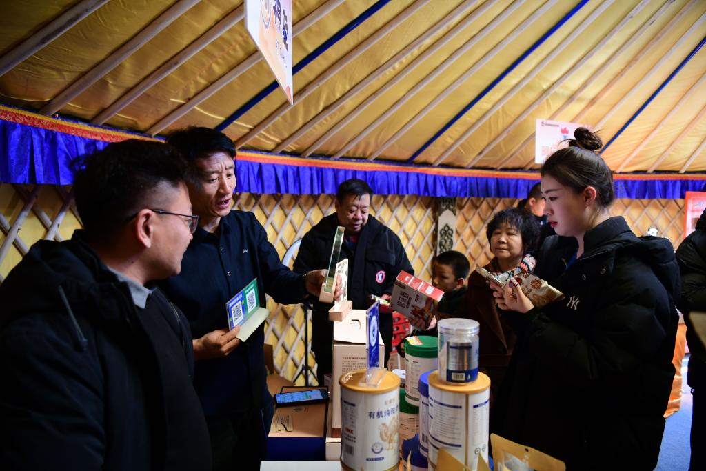 12月27日,游客在驼超联赛现场设置的特色产品店中购物。(康文魁 摄)