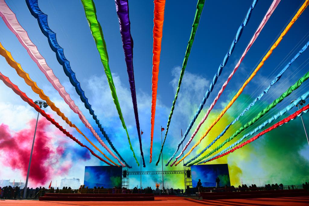 12月27日,随着彩烟升空,阿拉善骆驼超级联赛正式拉开帷幕。(康文魁 摄)