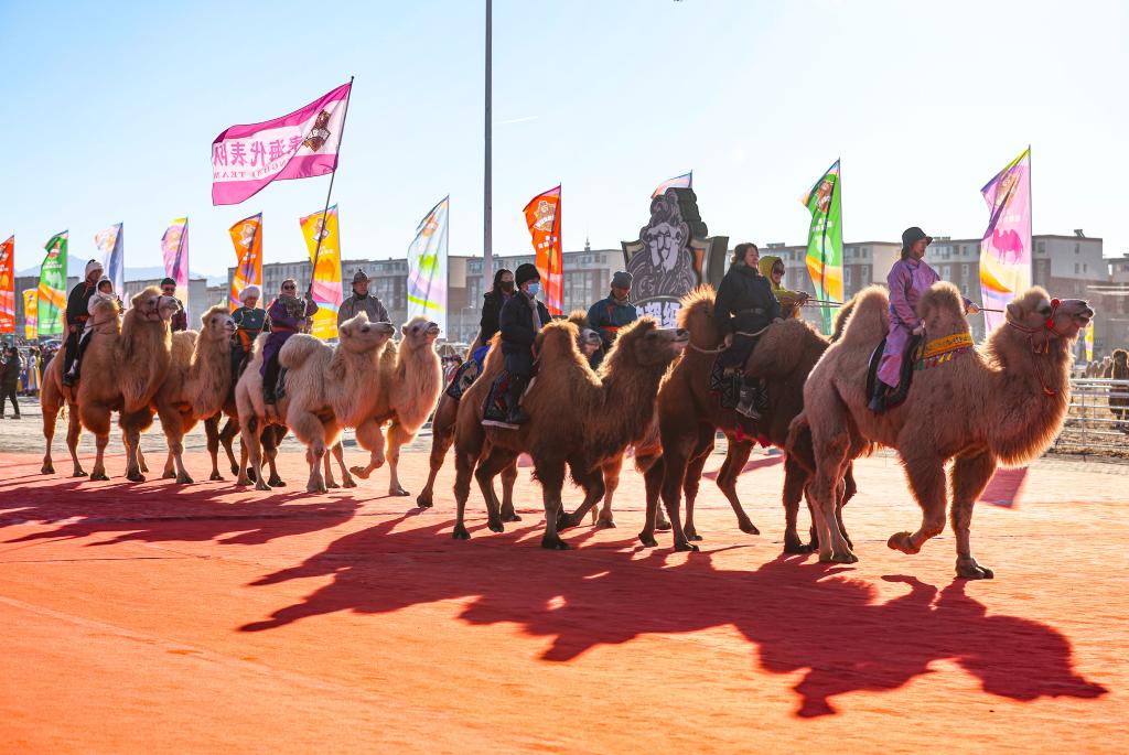 12月27日,参赛驼队在开幕式上入场。(康文魁 摄)