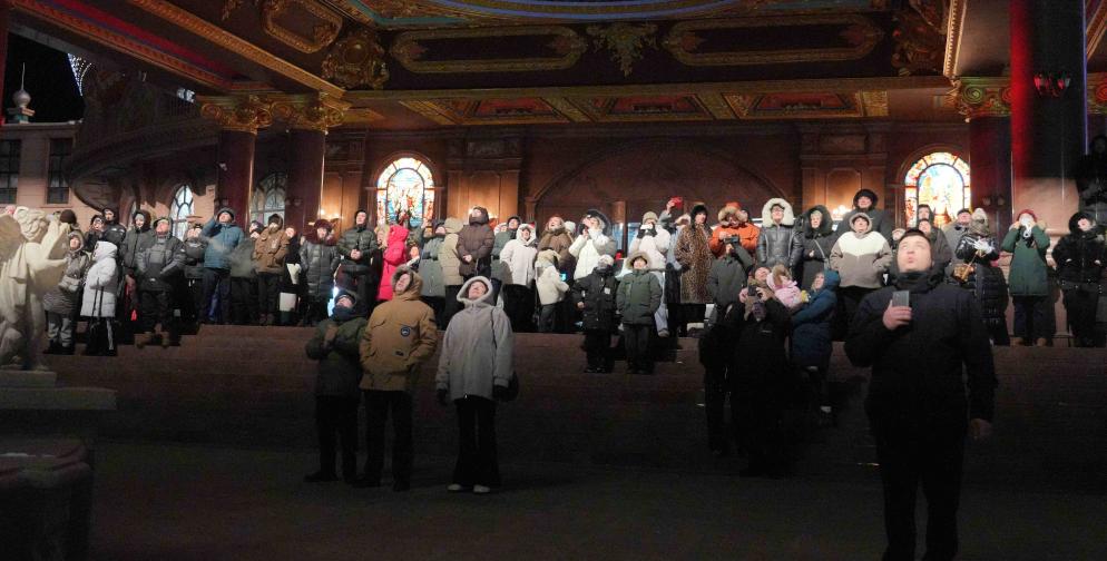12月31日晚,中俄蒙万人跨年活动在内蒙古呼伦贝尔满洲里市套娃酒店举办。来自俄罗斯、蒙古国及中国的游客齐聚这座边境口岸城市,在文化交融与欢乐互动中共同迎接2026年到来。
