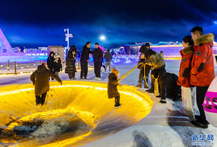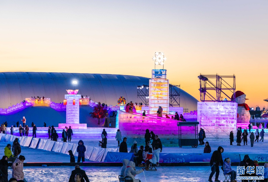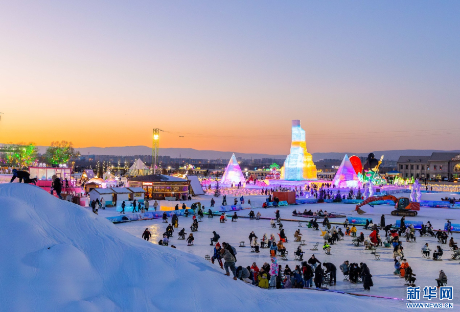 2025年12月31日,游客在第五届呼和浩特欢乐冰雪节园区游玩。新华网发(丁根厚 摄)
