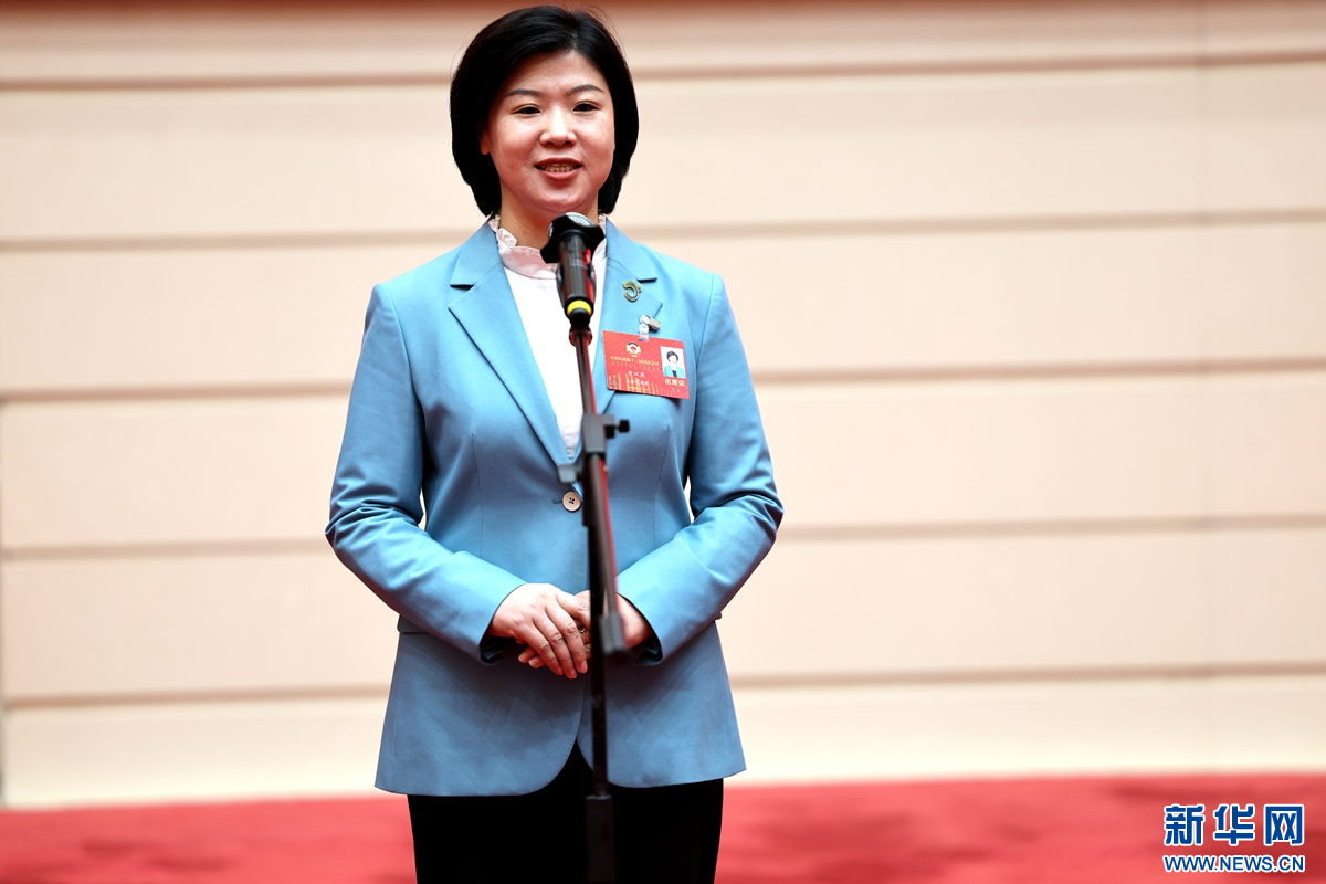 2月3日上午,在内蒙古自治区政协十三届四次会议“委员通道”上,自治区政协委员、赤峰市副市长黄双燕接受采访。新华网 杨腾格尔摄