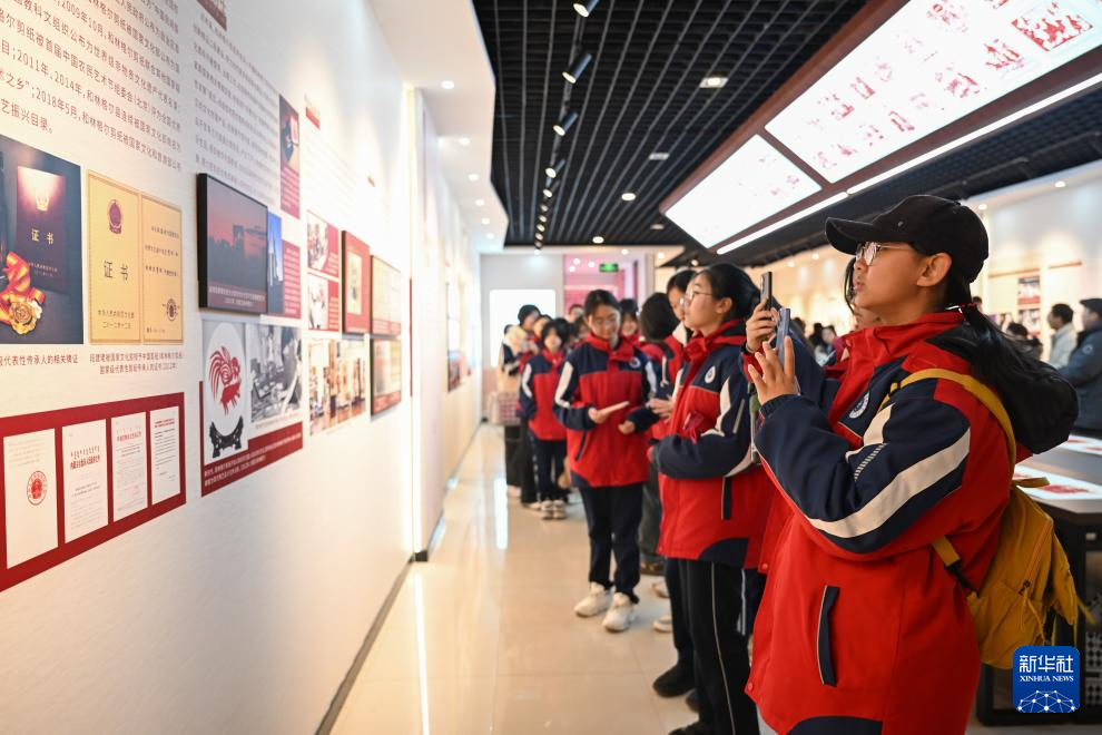 2月4日,内蒙古大学附属中学学生在内蒙古呼和浩特市和林格尔土城子国家考古遗址公园剪纸陈列馆参观。新华社记者 贝赫 摄
