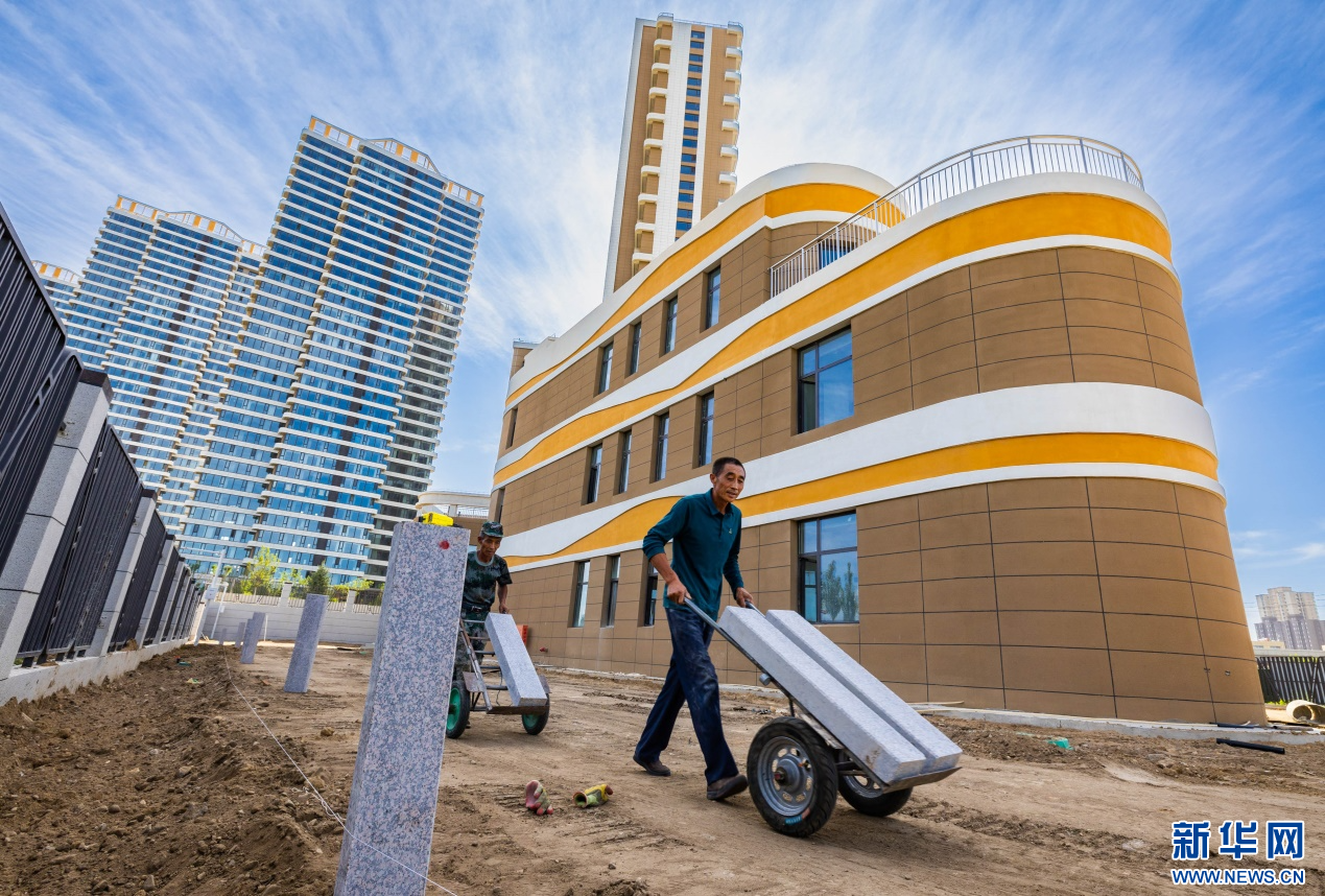 7月10日,呼和浩特市玉泉区云中路幼儿园建设项目现场。新华网发(丁根厚 摄)