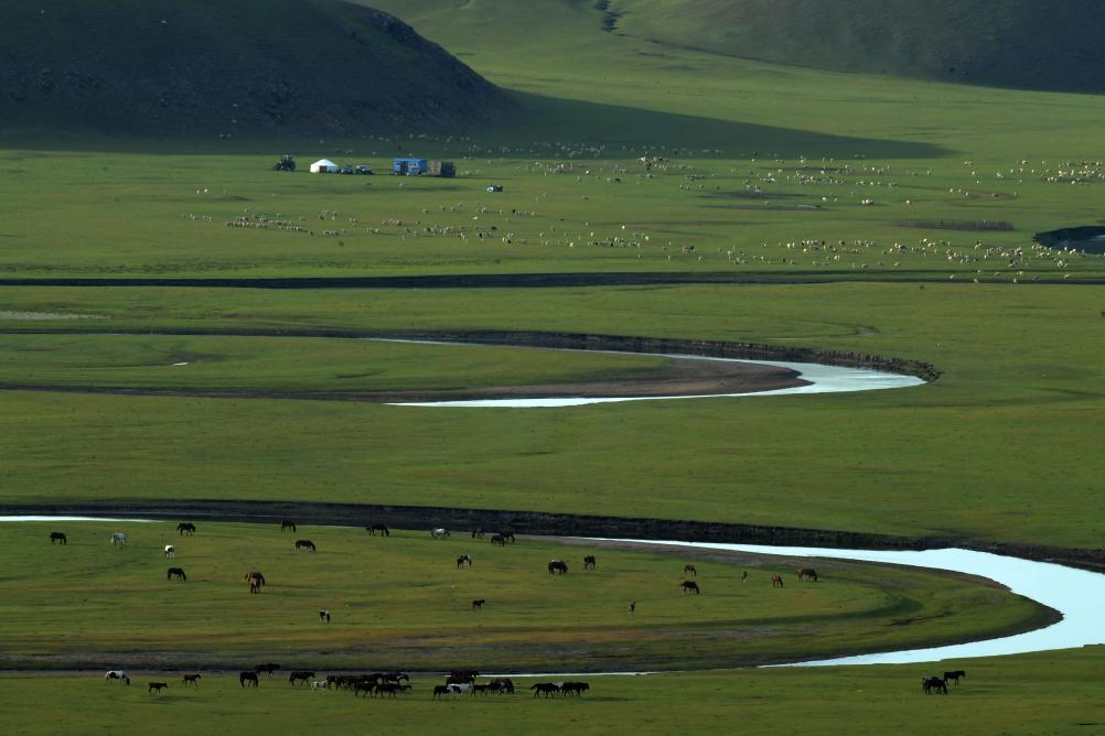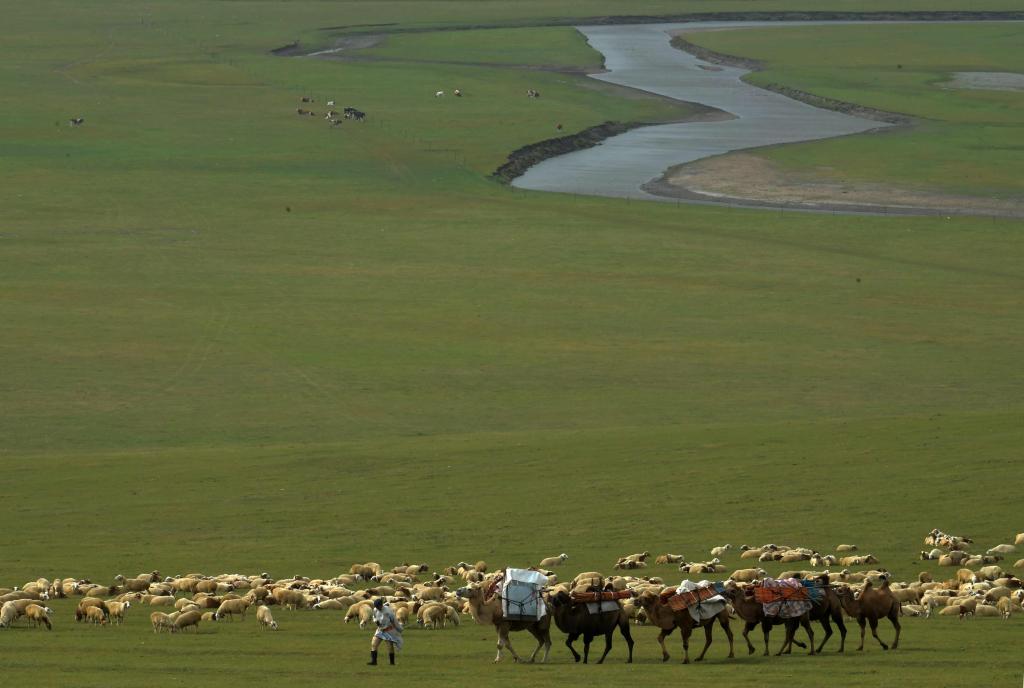秋日的呼伦贝尔大草原,缎面式的草坪黄绿相间,天空辽阔高远,白云飘逸悠然。被誉为“天下第一曲水”的莫尔格勒河就如一个跃动的音符,一条随劲风舞动的蓝色哈达,尽情展现妩媚身姿,滋润两岸的丰美绿野。牛羊肥壮、牧人策马、毡房点点、炊烟袅袅,眼前的景象好似一幅巨幅水墨画,画出诗情画意、画出勃勃生机、画出“畜”势勃发,映入人们眼帘、闯进人们心间。
