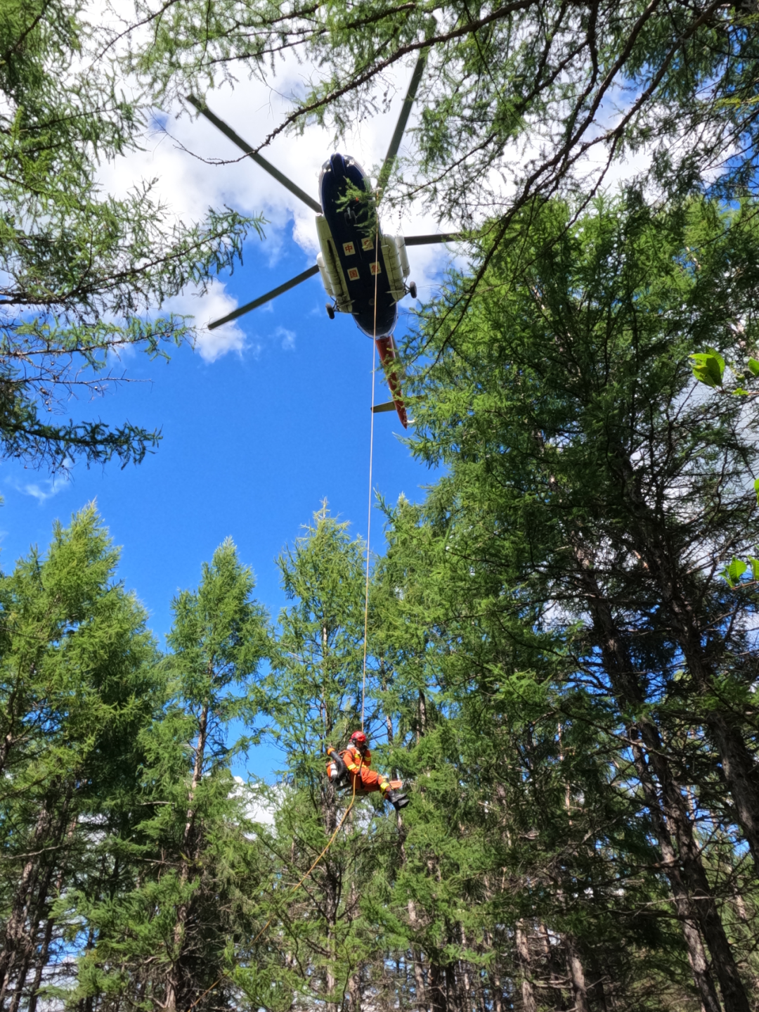 今年入夏以来,由于林区持续干旱少雨,部分地区频繁出现高温天气,特别是北部阿龙山、满归、根河等地海拔高、地势开阔,地面特殊高山植被偃松林含水率低、含油率高、地表腐质层厚,发生雷击后极易燃烧。8月6日11时32分,内蒙古大兴安岭航空护林局直升机载人巡护发现阿龙山森工公司塔朗空林场一处烟点,此后,阿龙山、满归等北部原始林区又相继发生14起森林火灾。灾情就是命令,针对着火现场地形较为复杂,山高坡陡,偃松遍布,扑救条件极为困难的实际,特勤突击队员奋勇争先,紧急出动,向火而行,第一时间前往扑救,采用直升机吊桶灭火和地面灭火相结合的方式,经七天七夜奋力扑救,于8月12日8时16分实现全线合围,15起森林雷电火灾被先后扑灭,未发生人员伤亡和重要设施损失,火灾扑救取得全面胜利。在整个火场无降雨的条件下,创造了依靠人力反应快速、科学扑救多点集中爆发的雷击森林火灾典型战例。