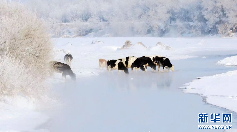 不冻河成了冬季牛儿的大水槽。新华网发(蒋希武 摄)