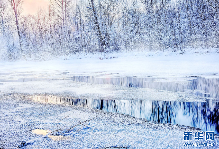 白雪皑皑下的不冻河。新华网发(蒋希武 摄)