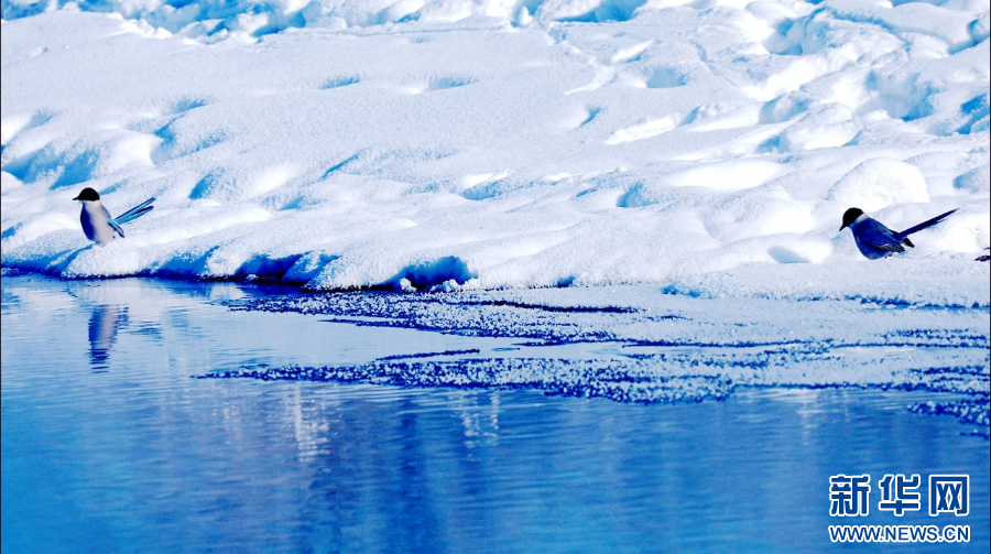 鸟儿在不冻河边觅食。新华网发(蒋希武 摄)